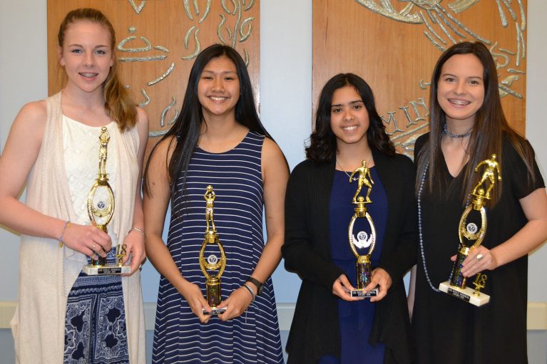 All-Academic Scholar Athlete Program honorees were (from left) Mackie Smith, Kelly Kramer, Hannah Paradis, and Catie Cabes.